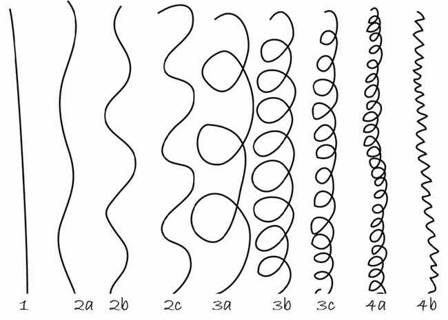 ♦ 2A (Fino) – Quase liso, possui fios em formato de S mais suave, não costuma ter muito volume e é fácil de modelar.